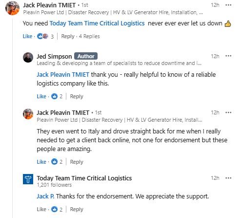 A customer in Lincolnshire needed parts urgently. Within 1 hour of speaking to Today Team they had collected the parcel and 3 hours later our customer had them on their desk. Good communication throughout. Friendly driver. Highly recommend and will definitely be using again.