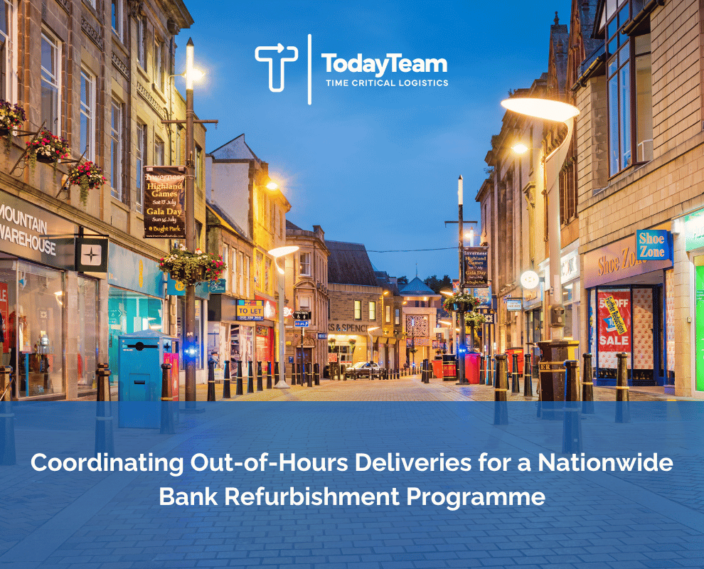 Today Team supported a specialist construction contractor delivering refurbishment works across multiple bank branches nationwide, providing time-critical logistics aligned to strict schedules, security requirements and out-of-hours working.
